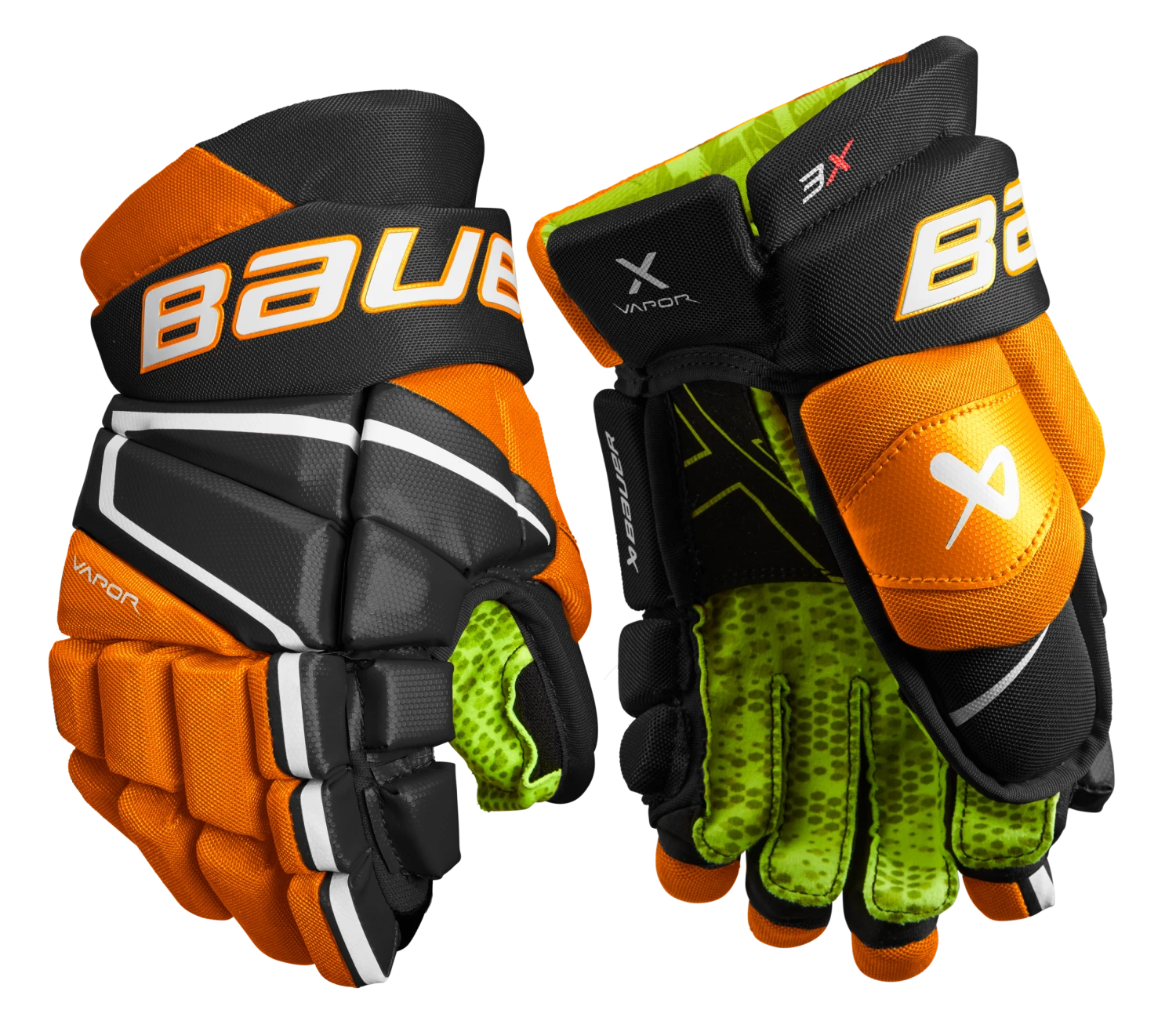 The unique VAPOR tapered fit is designed with comfort and protection in mind . The dual density foam package gives the Vapor 3X the perfect balance of protection and comfort. The exclusive TAKTILE palm with digital graphics provides a soft touch feel to the stick. The great feel and comfort of the Vapor 3X is enhanced with the Nanosense liner in the finger with a sublimated THERMOMAX liner to keep your hands comfortable all game long.
